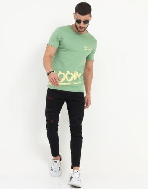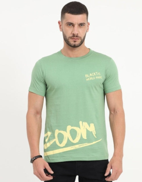Print Crew-Neck T-shirt (Off Green )