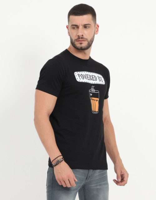 Slim Fit Typography Print Crew-Neck T-Shirt (Black )